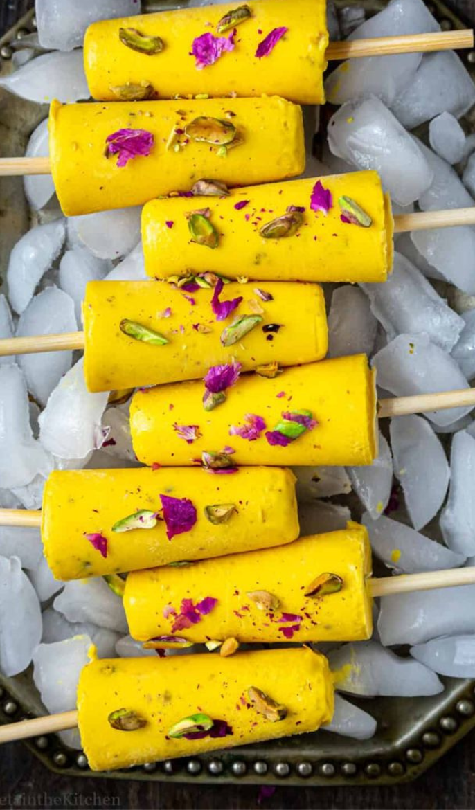 Kulfi is a traditional Indian frozen dessert similar to ice cream, but denser, creamier, and richer in taste. It is made by slowly simmering milk until it thickens, then sweetened and flavored with natural ingredients like cardamom, saffron, pistachios, almonds, or mango.